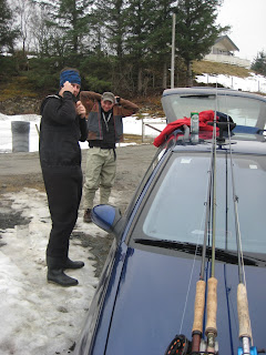 På tampen fikk jeg låne et eksemplar av godreka hans som etter få kast nesten ga meg en ørret på godt over kiloen. Den gikk rett til værs og satte så rett mot meg slik at jeg fikk slakt snøre og mista den. Plutselig var det en barnslig konkurranse gående hvor man telte fisk over kiloen, og jeg ble informert om at jeg lå under 1-0 (!). Er man en notorisk sildefisker og tar en ørret på 1,5 kg uten å ta bilde, på 1-april, ja så sier jeg fortsatt 0-0!